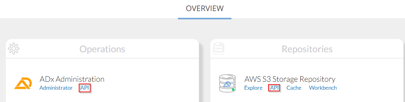 Check the sections below for a list of all endpoints available in Administrator and Repository APIs, along with their equivalent UI functionality (if available).