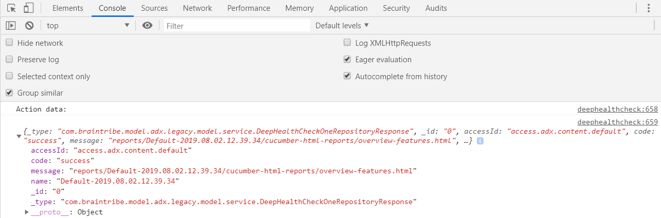 sessionIdand click Execute.Still on the same page, open the console of your web browser (F12 in most browsers). You should see a response listing all reports generated this session: